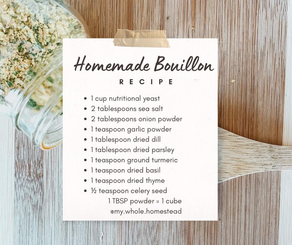 - bullion recipe ~ infographic: homemade spice mix recipe, instead of processed cubes from store